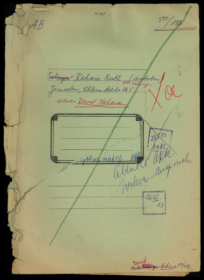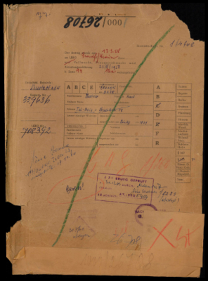 Sandow (Sandowski), Harry, residing in Tel Aviv, Israel, reparations file.Harry Sandow, a resident of Tel Aviv, Israel, sought restitution for precious metal items and jewelry seized in 1941 in Marijampolė, Lithuania, from his mother, Riwa Sandowski née Lurie, who perished there the same year. Harry's sisters, Bracha Lea, Mirjam, and Rina, also perished during the persecution along with their families. The case was handled by the United Restitution Organization (URO) offices in Tel Aviv, Berlin, and Munich. Following Harry Sandow's death in the USA around 1975, the URO informed his wife, Malka Sandow, that the claim could not be pursued further as the victim was his mother and there were no other eligible heirs.