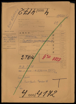 Kamenetz, Josef, residing in Tel Aviv, Israel, reparations fileJosef Kamenetz, residing in Tel Aviv, Israel, filed a claim for compensation for harm to health and profession due to Nazi persecution. Born in Memel, he grew up in Lithuania and attended a Hebrew gymnasium. Before the war, he worked in his father's sawmill and later co-owned it with his brother, Zelig. Following the Soviet occupation in 1939, he worked as an employee. From 1941 to 1944, Josef was imprisoned in the Schaulen (Šiauliai) ghetto, where his three-year-old child was taken from him and never seen again. During his imprisonment, he was held in a prison for six weeks, subjected to beatings which resulted in a broken nose, and forced into heavy labor at the Schaulen airfield and digging peat. He and his wife, Rywka Riwa, managed to escape during the ghetto's liquidation in 1944 and hid in an underground bunker in a forest until their liberation by the Soviets. His parents and four of his five siblings, including his brother Selig, were murdered during the Holocaust. After the war, he lived in Munich for four years, where he was hospitalized for six months due to a heart condition, and immigrated to Israel in 1950. As a result of the persecution, he suffered from severe health issues, for which he was awarded a pension and compensation for a 35% reduction in earning capacity. Based on a court settlement from February 11, 1965, Mr. Kamenetz was awarded a capital payment of DM 11,953 and a monthly pension starting from November 1, 1953, which was periodically increased. The United Restitution Organization (URO) offices in Tel Aviv (also known as MILTAM) and Munich handled the claim, which was also addressed to the Compensation Treuhand, GmbH.