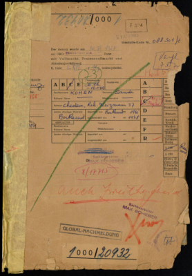 Kohen, Sandu, residing in Hadera, Israel, reparations file. Kohen (née Vaduva), Valerica, residing in Hadera, Israel, reparations file.Sandu Kohen, residing in Hadera, Israel, sought compensation for harm to liberty suffered in forced labor camps in Romania, including Busteni, Telega, Campina, Valea Prahovei, and Bucharest, from August 1941 to August 1944, where he claimed to have been forced to wear a yellow armband. He also stated he was deported from Bucharest in 1941. After the war, he emigrated from Romania to Israel in 1948. On May 31, 1963, Sandu Kohen was granted compensation of DM 1,500 for harm to liberty suffered from August 16, 1941, to September 30, 1942, while his claim for the period from October 1, 1942, to August 23, 1944, was initially denied. Later, he and his wife, Valerica Kohen, applied for a monthly allowance from the Hardship Fund (Härteausgleich). In a settlement dated October 3, 1974, they were granted a hardship allowance under § 165 BEG, which included a one-time payment of DM 4,900 and a monthly allowance of DM 235 from November 1, 1974, to October 31, 1978. This monthly allowance was later increased to DM 300 and extended until October 31, 1982, but a subsequent request for further extension was denied in 1983, and the appeal against this decision was dismissed in 1984. The United Restitution Organization (URO) offices in Tel Aviv and Frankfurt handled the case.