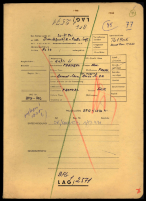 Else Frenkel, a resident of Ramat Chen, Israel, filed claims for compensation for the loss of property in Halle, Germany, on behalf of her late husband, Chanan (Hans Hermann) Frenkel, and his sister, Edith Frenkel. Her sister-in-law, Edith Frenkel, was deported to the East in 1942 and perished. Her husband, Chanan Frenkel, was a victim of Nazi persecution who survived by emigrating from Germany in 1933. Compensation was sought for Edith and Chanan Frenkel's shared ownership of a residential property and for a bank account at the Dresdner Bank in Halle. Based on the Lastenausgleichsgesetz (LAG), Else Frenkel received a total compensation of DM 5,334.50, Jehudit Anna Frenkel received DM 8,001.75, and David Mosche Frenkel received DM 8,001.75. The claim was handled by the United Restitution Organization (URO) office in Tel Aviv, which corresponded with the URO Central Office in Frankfurt/M.
