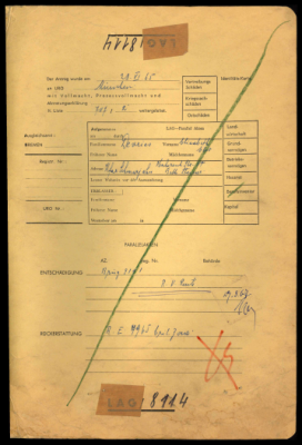 Harry Sandow, a resident of Tel Aviv, Israel, sought restitution for precious metal items and jewelry belonging to himself, his wife Malka Sandow (née Friedmann), and their daughter Ella Ohana. The family was forced to surrender their valuables in 1941/42 in Kaunas, Lithuania, under threat of death by a Sonderkommando, and their remaining possessions were later confiscated by the Gestapo from their ghetto apartment. Before the war, on September 1, 1939, the family resided at Kestucio Str. No. 2 in Kaunas, where Harry worked as a traveling salesman. All three family members survived the persecution. After the war, Harry and Malka Sandow lived in Tel Aviv, while their daughter, Ella Ohana (née Sandow), resided in Brooklyn, NY, USA. Following Harry's death in 1969, his wife and daughter continued the claim. After Malka's death in 1975, Ella, as the sole heir, pursued the final payment. Based on § 44a of the Federal Restitution Law (BRüG), the family was granted a total hardship compensation of 1,300 DM. The United Restitution Organization (URO) offices in Tel Aviv, Berlin, and Munich were involved in the case.