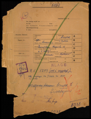 Arnold Loewenstein of Givatayim, Israel, and his brother Julius Adolf Loewenstein of Ramat Hen, Israel, seek compensation for the destruction of household items, furnishings, and a textile warehouse during the November 1938 Pogrom (Kristallnacht), and seizure of precious metal items, a bank account, and a lift of new furniture belonging to their father, Nathan Loewenstein, who was deported from Karlsruhe to Theresienstadt Ghetto on August 23, 1942, and perished there on December 17, 1942. The applicants also seek compensation for harm to profession and harm to liberty suffered by their father, who was forced to wear the Yellow Badge from September 19, 1941, until his deportation, as well as for a surrendered life insurance policy. Nathan Loewenstein's second wife, Fanny Loewenstein (née Nussbaum), was deported with him to Theresienstadt and was later transported to Auschwitz on January 29, 1943; she was officially declared dead as of August 31, 1942. Dr. Julius Adolf Loewenstein emigrated from Ludwigshafen am Rhein to Palestine in early April 1933, and his brother, Arnold Loewenstein, emigrated from Karlsruhe to Palestine in early September 1933. The applicants, as heirs, were awarded a total of DM 7,279 for harm to profession, DM 2,100 for harm to liberty, and DM 1,862.70 for the insurance policy. The claim for property destruction during Kristallnacht was dismissed. The case involved the United Restitution Organization (URO) offices in Tel Aviv and Frankfurt, the Legal Aid Department of the Jewish Restitution Successor Organization, and the General Trust Corporation Ltd. in Tel Aviv for the lift seized in Trieste. On p. 120 is a list of the goods sent in the lift. Contains mention of art (paintings). Contains mention of books.