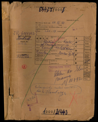 Israel Dunkelman, born in Kalisz, Poland, sought compensation for harm to liberty suffered during the Nazi era, which included his confinement in the Zwangsarbeitslager Borenhagen from November 1939 to May 1940, the Lodz ghetto from May 1940 to August 1944, Auschwitz concentration camp from August 1944 to December 1944, the Gleiwitz forced labor camp from December 1944 to January 1945, and Dachau concentration camp until his liberation on April 29, 1945. He was forced to wear the Yellow Badge. After the war, he stayed in the Föhrenwald DP camp and lived in Hannover before immigrating to Israel in 1948. Mr. Dunkelman also applied for a German social security pension for his forced labor as a fireman in the Lodz ghetto. On November 22, 1954, he was awarded compensation of DM 9,300 under §16(1) BEG for 62 months of imprisonment. Following his death on November 2, 2003, his widow, Cilla Dunkelman, continued the pension claim and applied for widow's benefits. The file mentions his relatives, Nacha and Zeldka Dunkelman, who lived in the Lodz ghetto and were likely deported to Auschwitz during the ghetto's liquidation in August 1944. The United Restitution Organization offices in Haifa, Berlin, and Frankfurt, along with the Organisation of Former Residents of Lodz in Israel, were involved in the case.