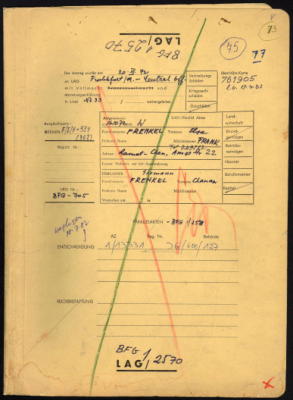 Else Frenkel, residing in Ramat Hen, Israel, sought restitution for a house and real estate at Händelstrasse 34, Halle (Saale), and for monetary assets at Dresdner Bank, Filiale Halle. The assets were co-owned by her late husband, Chanan (formerly Hans Hermann) Frenkel, and his sister, Edith Therese Frenkel, who went missing after her deportation from Halle to the East in 1942 and was declared dead as of December 31, 1945. Chanan Frenkel emigrated to Palestine in March 1933, with funds transferred via the 'Haavara' agreement, and married Else in Jaffa on September 12, 1933. After Else's passing, their children, Jehudit Anna and David Mosche Frenkel, continued the claims. Based on the Lastenausgleichsgesetz (LAG), the heirs were awarded a total of 8,700 DM for Chanan's losses and 10,250 DM for Edith's losses. The case was handled by the United Restitution Organization (URO) offices in Tel Aviv and Frankfurt/Main. The file contains part of Chanan's German Passport.