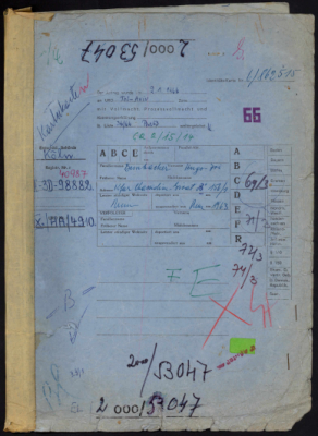 Grynszpan-Frimmer (Frymer), Chaim, residing in Tel Aviv, Israel, reparations file.Chaim Grynszpan-Frimmer, a pre-war Warsaw resident born in Gniewoszow, Poland, sought compensation for harm to liberty suffered in the Warsaw Ghetto from October 1940 until he escaped in May 1943 after the Warsaw Ghetto Uprising. He lived in hiding near Warsaw until liberation in August 1944 and was forced to wear the Yellow Badge. After the war, he immigrated to Israel in October 1945. Restitution was also sought for a shoe factory and warehouse in Warsaw belonging to his parents, Mosze Frymer and Necha Grynszpan. His father, Mosze Frymer, perished in the Lublin area after the liquidation of the Warsaw Ghetto. The applicant was awarded DM 6,000 for 40 months of detention and a further DM 2,400 for 16 months of living in illegality. The case was handled by the United Restitution Organization (URO) in Tel Aviv and Frankfurt, with its local partner MILTAM.