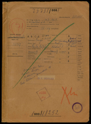 Falk (née Szpiro), Ada, residing in Tel Aviv, Israel, reparations file.Ada Rosa Falk, residing in Tel Aviv, Israel, seeks restitution for precious metal items, jewelry, furs, a library, and life insurance policies seized in 1940 in Łódź, Poland. These assets belonged to her parents, Josef Hersch Szpiro, who perished in the Łódź Ghetto on August 30, 1941, and Blima Szpiro, who perished there on August 31, 1943. According to testimonies Josef was physically abused by Gestapo during the search. Ada's siblings, Pola Perla Berger, Jehuda Lajb Szpiro, and Nathan Szpiro, are co-heirs and also victims of Nazi persecution. Ada Falk had lived in Palestine since 1935 but was visiting her parents in Łódź when the war broke out and returned to Palestine in late 1939. The applicants received DM 1,400 for furs and DM 6,000 for jewelry and precious metals in settlements from the Wiedergutmachungsämter von Berlin in 1963. The claim for the library was dismissed in 1967 for lack of proof that the items were brought into West German territory as required by § 5 BRüG. The United Restitution Organization (URO) offices in Tel Aviv, Berlin, and Frankfurt were involved in the case. Contains mention of books.