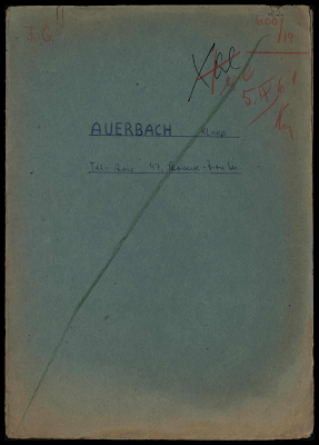 Auerbach (née Marx), Klara, residing in Tel Aviv, Israel, reparations file.Klara Auerbach, residing in Tel Aviv, Israel, sought compensation for the loss of her widow's pension, as a heir of her late husband phil. Isaak Auerbach, a rabbi in Halberstadt, Germany. The United Restitution Organisation (URO) in Tel Aviv represented her claim. Based on the regulation of July 6, 1956, for public service employees, Klara Auerbach was granted a monthly pension, which was adjusted over time and set at DM 546.05 as of January 1, 1956.