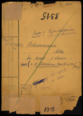 Selka Ochsenmann, residing in Kfar Haroeh, Israel, sought compensation for harm to liberty for herself and her husband, Karl Ochsenmann, restitution for punitive taxes paid (Judenvermögensabgabe and Dego-Abgabe), household items seized from shipment, monetary assets seized from their bank account, and compensation for harm to her husband's profession. Originally from Frankfurt am Main, Germany, the couple emigrated to Holland in February 1939. Both were forced to wear the Yellow Badge in Holland from May 2, 1942. They were deported from Amsterdam to Westerbork concentration camp on May 26, 1943, and then to Bergen-Belsen concentration camp in January 1944. Selka was released on July 10, 1944, as part of an exchange transport to Palestine. Karl Ochsenmann survived the Holocaust and died in Kfar Haroeh on November 24, 1946. After Selka Ochsenmann's death, her daughter, Julie Jehudith Wallerstein, continued the claim for household items lost during her parents' deportation in Holland. Selka Ochsenmann was awarded a total of 1,950 DM for 13 months of imprisonment, an additional 1,500 DM for wearing the Yellow Badge, a remaining balance of 674.81 DM for punitive taxes, a further 450 DM in a court settlement for damages due to loss of liberty, and an additional 1,950 DM for her husband's loss of liberty. The case was handled by the United Restitution Organization (URO) offices in Tel Aviv and Frankfurt am Main, with involvement from the Irgun Olej Merkas Europa (IOME) and the Legal Aid Department (LAD) of the URO.