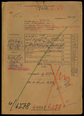 Max Bernstein, residing in Tel Aviv, Israel, sought restitution for household items seized as part of the M-Aktion (Möbel-Aktion) from his parents, Osias Herman Bernstein recte Kahane and Hanna Anna Bernstein recte Kahane née Czaban. The applicant's parents were forced to wear the Yellow Badge and went missing following their deportation from Antwerp via Malines to Auschwitz on May 19, 1944. Max Bernstein, who had emigrated from Vienna to England in early 1939 and lived there during the persecution, received a settlement of DM 14,400 for three compensable rooms under the Federal Restitution Law (BRÜG). The URO offices in Tel Aviv, Berlin, and Brussels, along with the Centraal Beheer van Joodse Weldadigheid en Maatschappelijk Hulpbetoon (CENTRALE) in Antwerp, were involved in processing the claim.